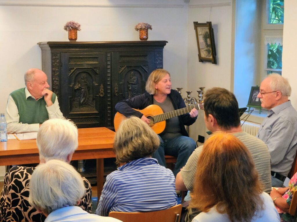 Eine kurzweilige wie auch tiefsinnige aber immer im Rahmen der „Simplosophie“ sich bewegende Auseinandersetzung mit der deutschen Sprache, bot Bördeautor Rudolf Köster im Stockebrand Haus im Rahmen der Literarischen Stunde an. Auch als Verseschmied bekannt, prägte Rudolf Köster schon früh den Begriff der „Simplosophie“ als Ausdrucksform für die einfach erheiternde Seite der deutschen Sprache. Begleitet von Elke Henke mit Gitarre und Gesang von Liedern von Reinhard Mey, wurde dieser Abend literarisch wie auch musikalisch eine sehr vergnügsame Unterhaltung.